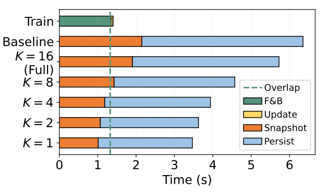 训练中会与 I/O 相关的点主要在于 Checkpoint,尤其是在大规模训练的时候,Checkpoint 不可或缺,且其开销也比较大的,在传统 dense 模型中就有过很多篇讨论把全量 Checkpoint 拆开,放在流水线 pipeline 的 bubble 过程中做的 paper(CheckFreq、Gemini),这里介绍一篇专门针对 MoE 做的 Checkpoint 优化。